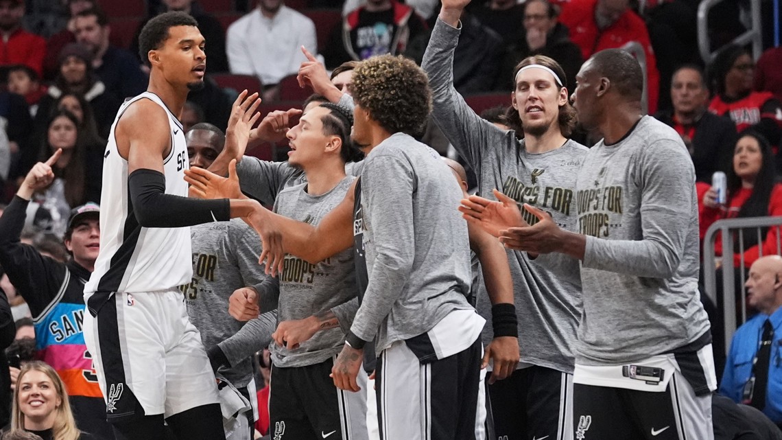 SAN ANTONIO — The San Antonio Spurs won their third-straight game with a road win over the Chicago Bulls, 121-117. Victor Wembanyama led the team with 38 points, 12 rebounds and five blocks. He is the first player in NBA history with 35-plus points, 10-plus rebounds, 5-plus assists, 5-plus blocks and 5-plus 3-pointers.