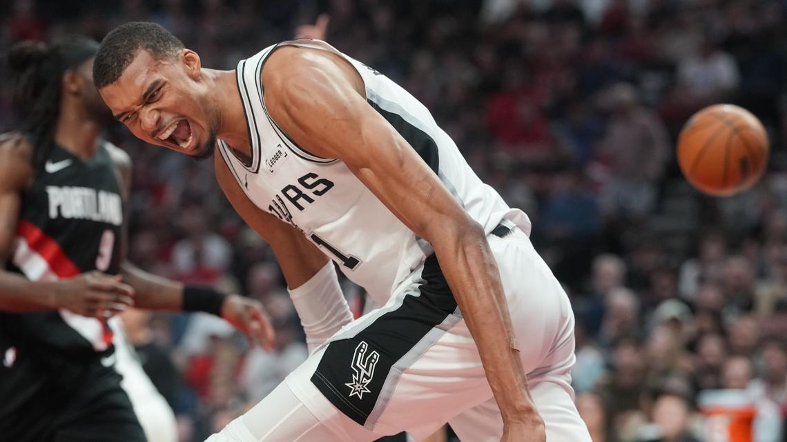 Wembanyama, who was listed as questionable going into the game, started and drew gasps from the crowd at the Moda Center with an emphatic dunk with 9:58 to go in the first half.