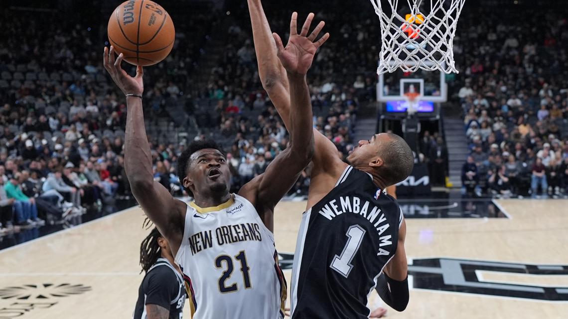 SAN ANTONIO — Saddiq Bey and Zion Williamson each had 24 points and 10 rebounds and the New Orleans Pelicans squandered a 20-point lead before rebounding to beat the San Antonio Spurs 104-95 on Sunday night.