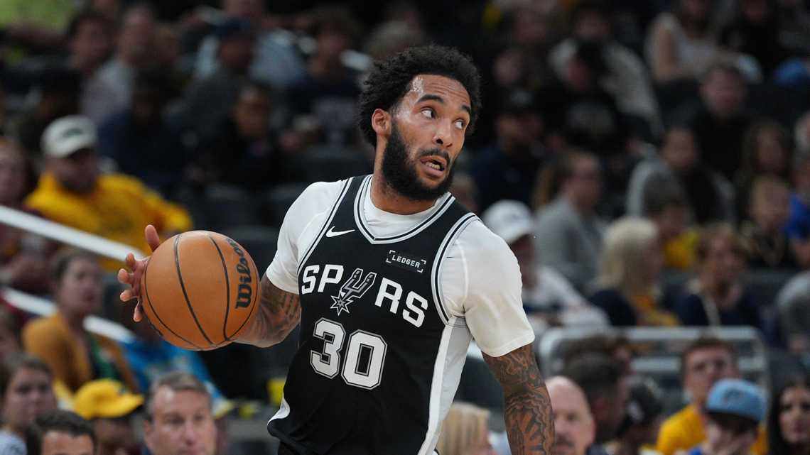 SAN ANTONIO — San Antonio Spurs‘ Julian Champagnie is the team’s marksman from the three-point line, connecting on 38% from beyond the arc, the second-highest of his career. His role on the team is to be ready to shoot the ball whenever he is open.