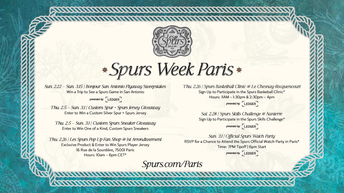 French fans can see the full Spurs Week Paris event calendar with location details as they become available by visiting Spurs.com/Paris and following Les Spurs on Instagram and Facebook.
