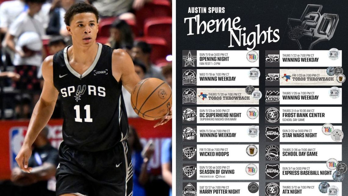 The Austin Spurs announced the promotional schedule for the 2025-26 season, with each home game featuring a theme night with special events and community initiatives. Tickets are on sale now on Ticketmaster or at austinspurs.com.