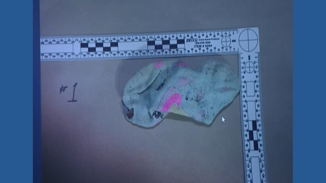 In a trash pile behind the shed, investigators found a child’s sock, which they collected as evidence.