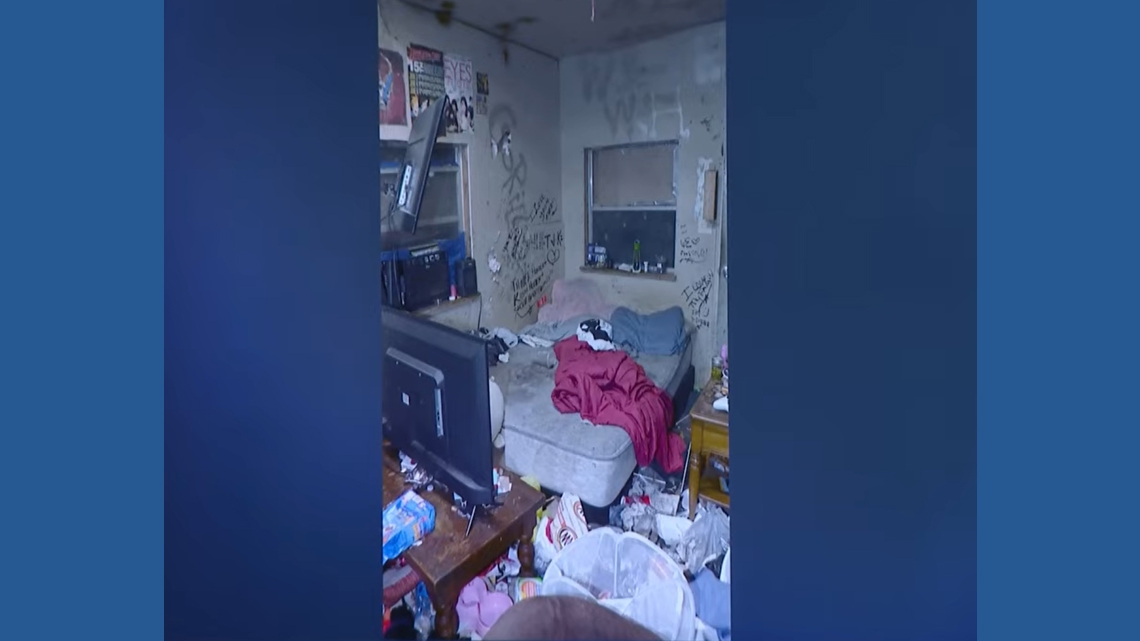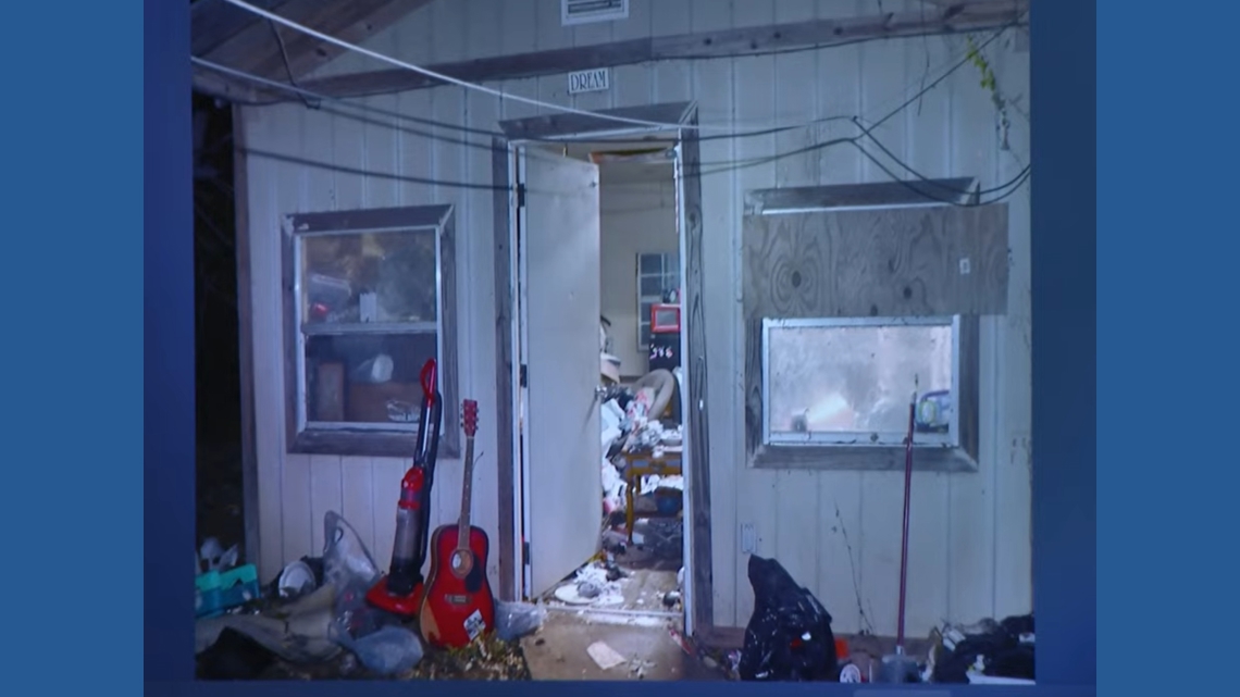 Horner lived in a shed behind the main house. The outside, and inside, were strewn with trash. A sign that read “DREAM” was over the front door.