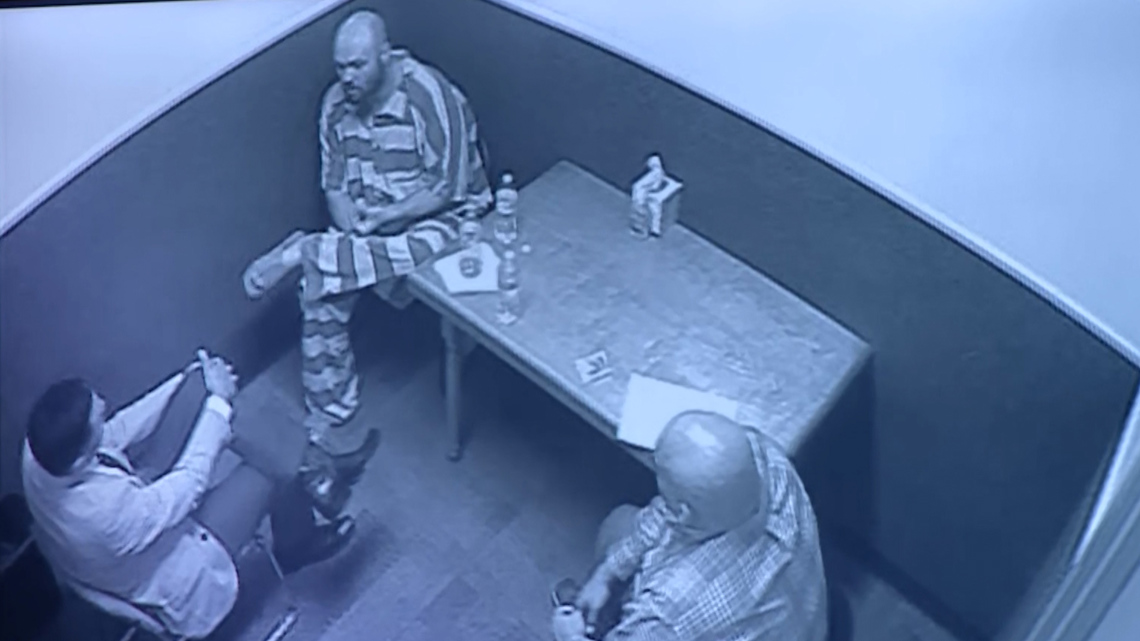 Prosecutors play the recording of this follow-up interview with investigators Horner sought. He’s dressed in a striped jail jumpsuit.