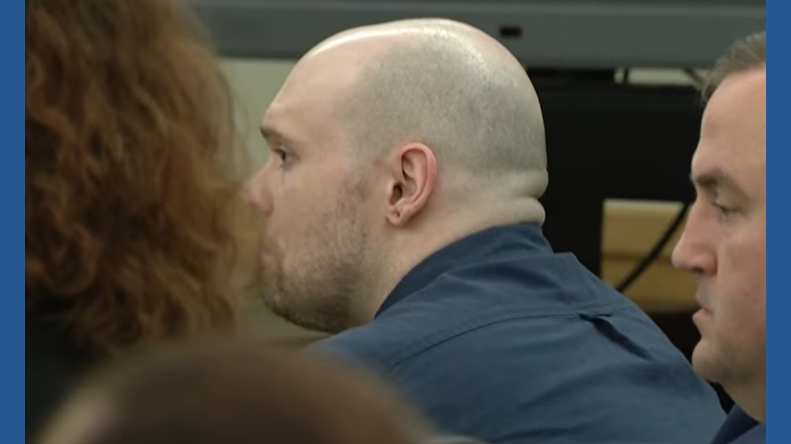 In the courtroom, while this section of the video is playing, Tanner Horner sits with his elbows on the defense table, his chin on his fists, his expression blank,
