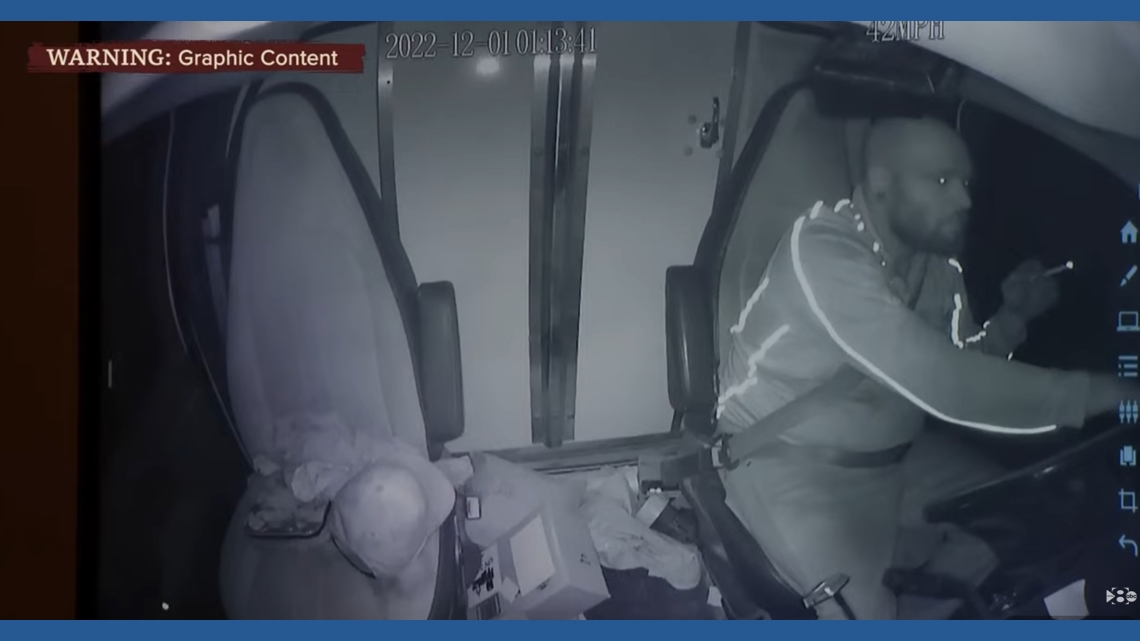 The video image is dark, and Horner is not immediately visible, but investigators follow him into the truck. Horner then talks quietly, barely audible as they begin driving. “Left?” “Yes.” The vehicle’s engine roars as they speed down the road.