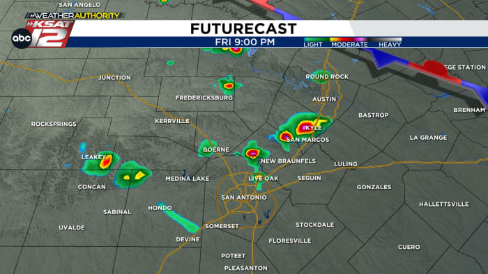 While the storms move south, they’ll weaken, but San Antonio has a chance for rain