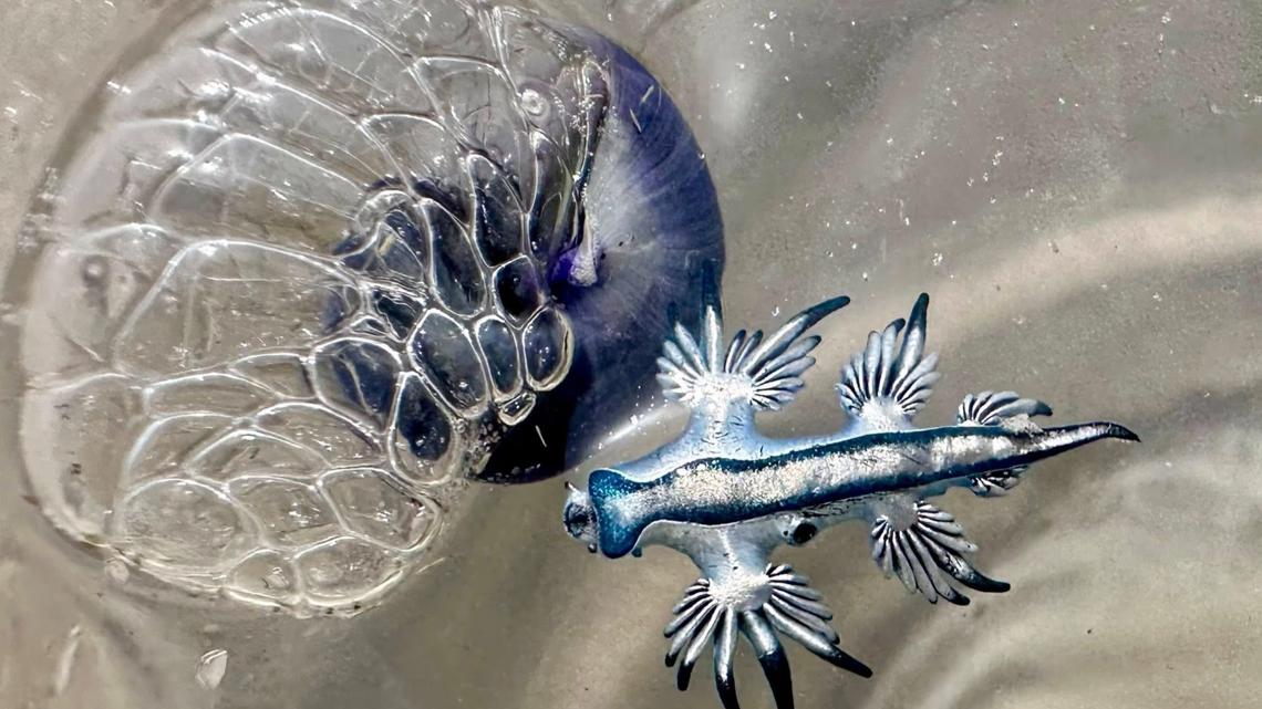 CORPUS CHRISTI, Texas — A rare and striking ocean creature nicknamed the “blue dragon” is washing up on parts of the Texas coast, and researchers say beachgoers should admire it from a distance.