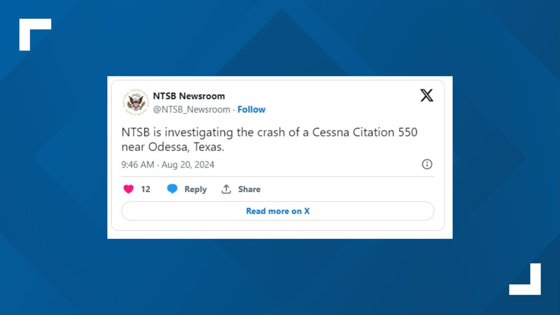The aircraft has been identified as a single pilot Cessna Citation 550 by the National Transportation Safety Board via Twitter: