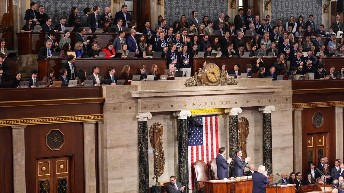 WASHINGTON — The Olympic gold medal-winning U.S. men’s hockey team visited President Donald Trump at the White House on Tuesday afternoon and later received about a two-minute bipartisan standing ovation during his State of the Union address that night.