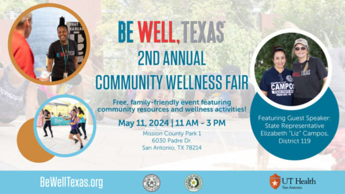 The community wellness fair will be held from 11 a.m. to 3 p.m. at Mission County Park 1, located at 6030 Padre Drive in San Antonio.