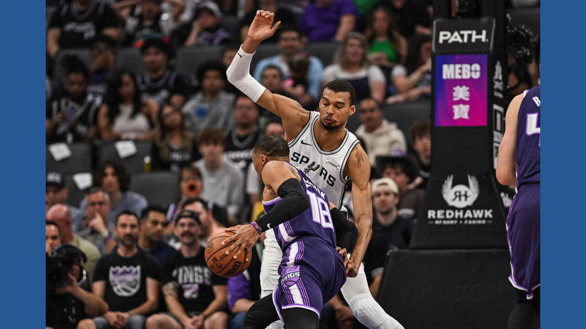 Wembanyama shot 7 of 14 with a pair of 3-pointers and three assists to help the Spurs to their first win in Sacramento in more than two years.