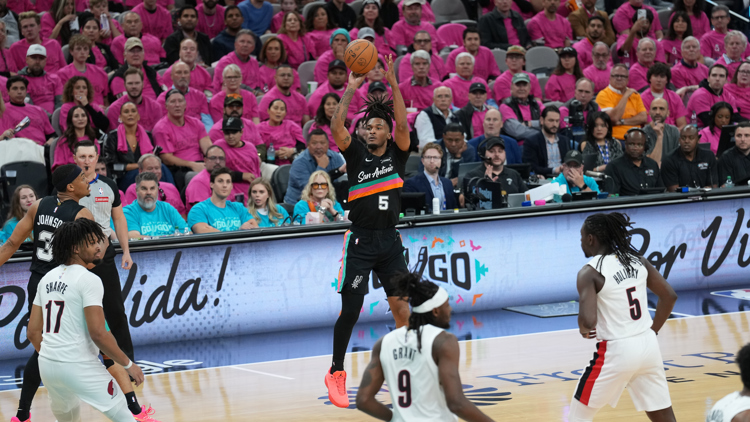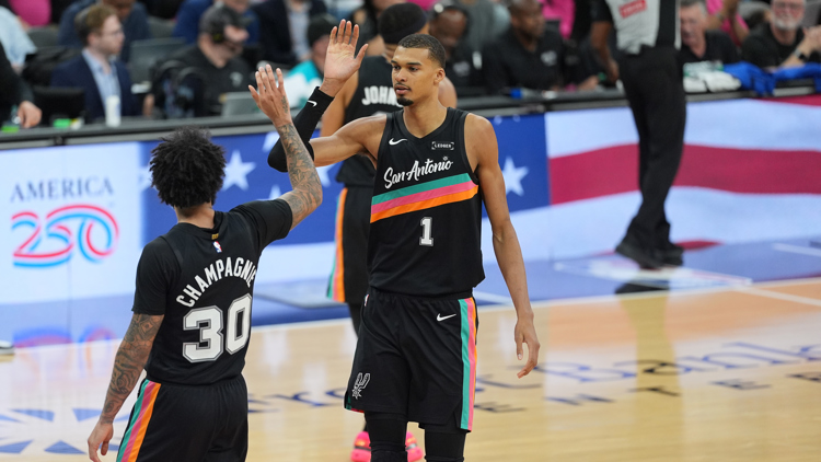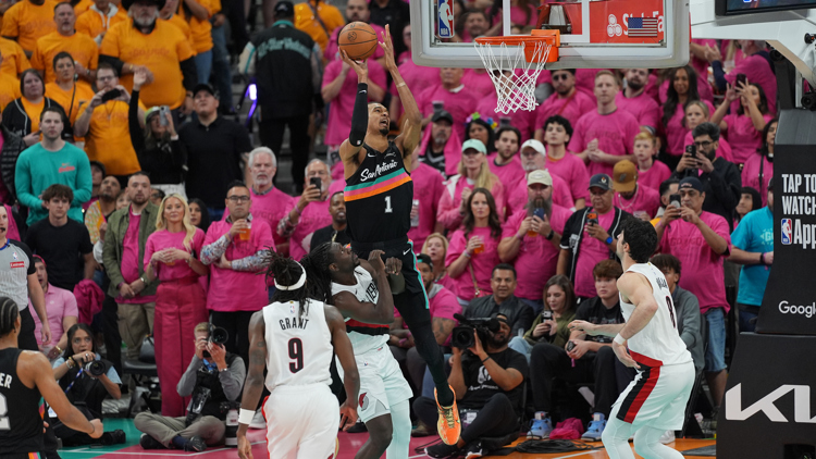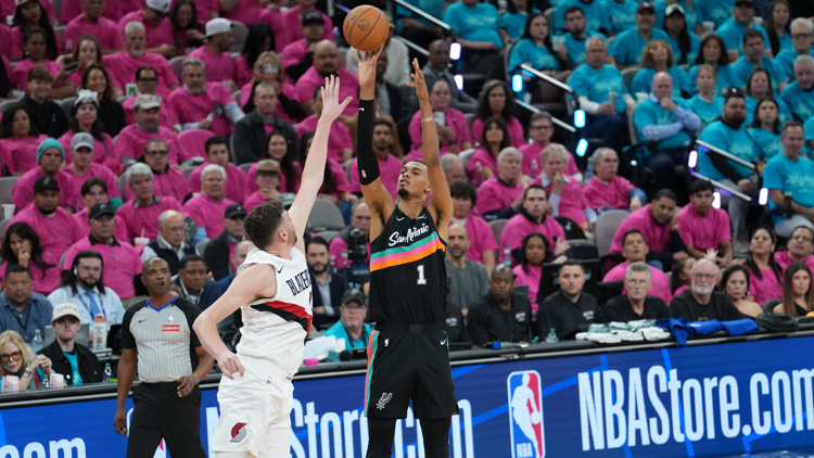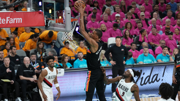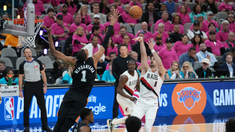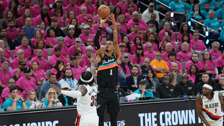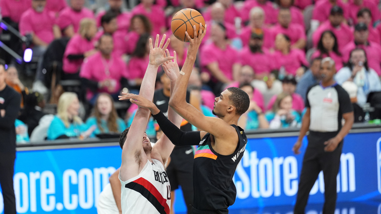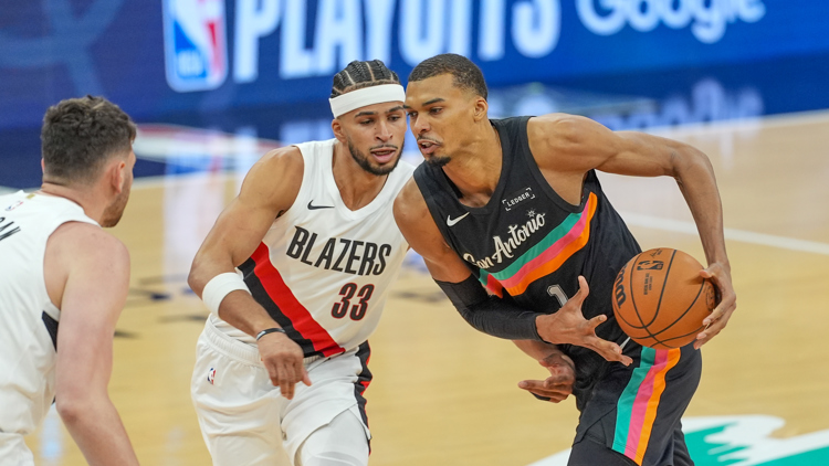 SAN ANTONIO — Victor Wembanyama scored 35 points in his playoff debut and the San Antonio Spurs rolled to a 111-98 victory over the Portland Trail Blazers in Game 1 of their first-round Western Conference playoff series Sunday night.