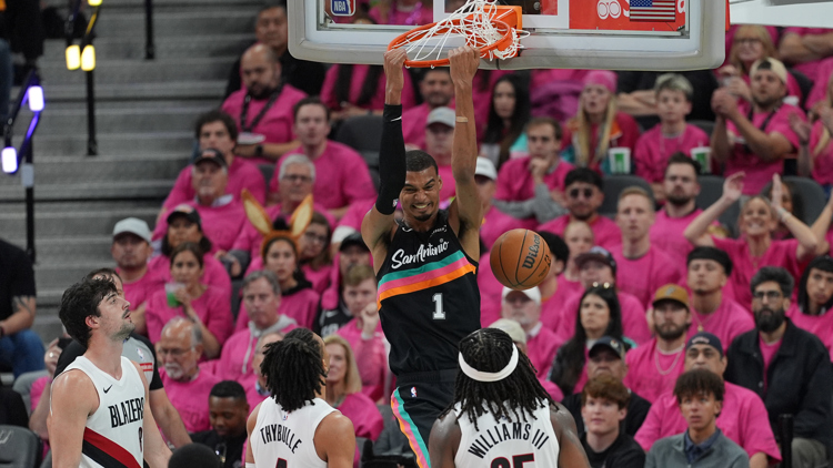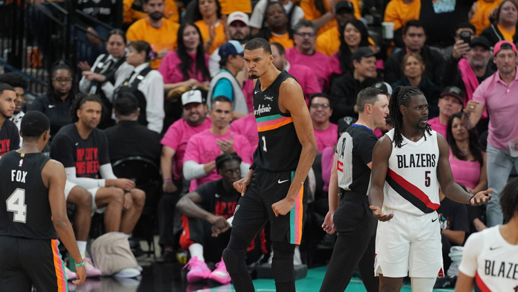 Victor Wembanyama scored 35 points in his playoff debut and the San Antonio Spurs rolled to a 111-98 victory over the Portland Trail Blazers in Game 1.
