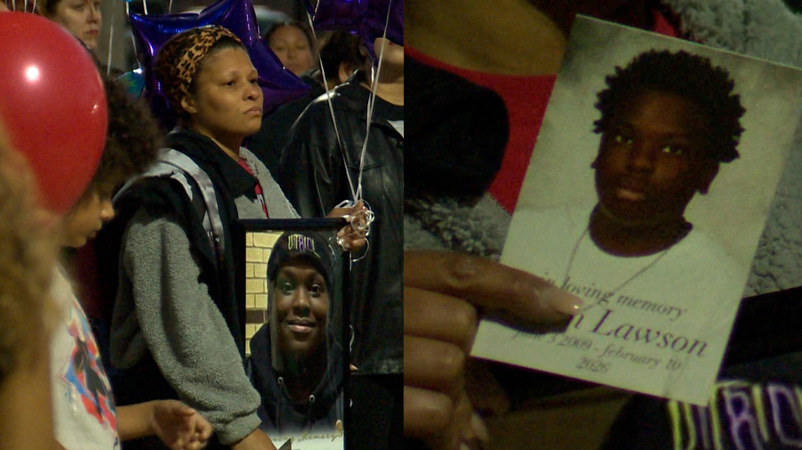 SAN ANTONIO — About 100 family members, friends and community members gathered Saturday night near Stevens High School to honor 16-year-old Jaren “J-Law” Lawson, a football player who died after collapsing during practice earlier this week.