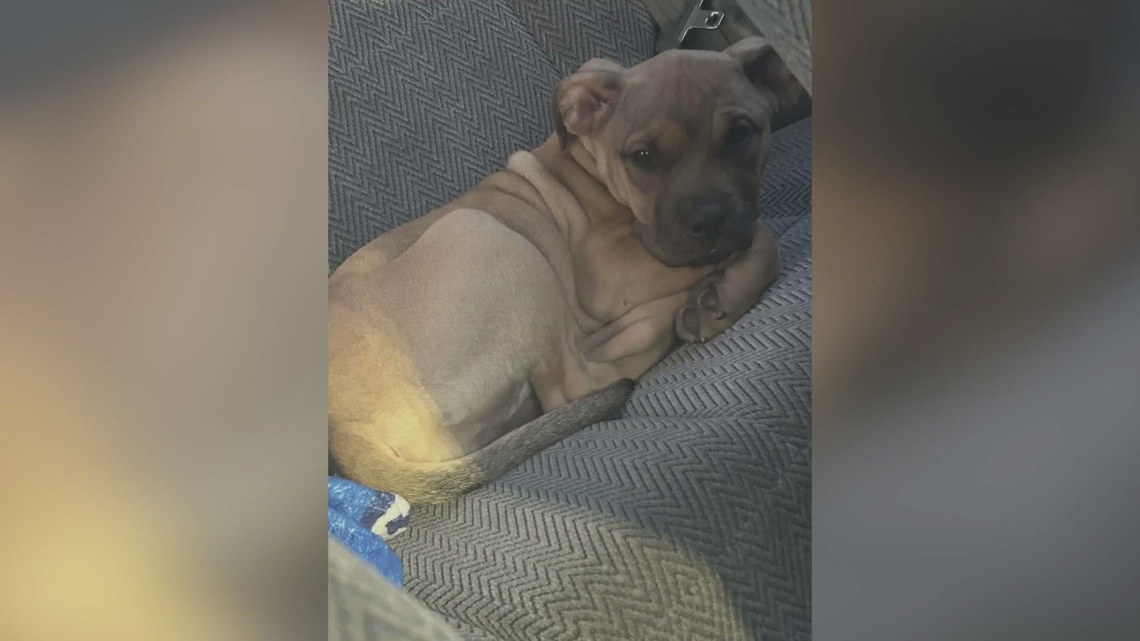 Honey is described as a blonde Pitbull-Mastiff mix. Her owner says Honey is normally loving and gentle, but may now be scared or reactive because of trauma and possible injuries. Anyone who spots her is urged to approach carefully.