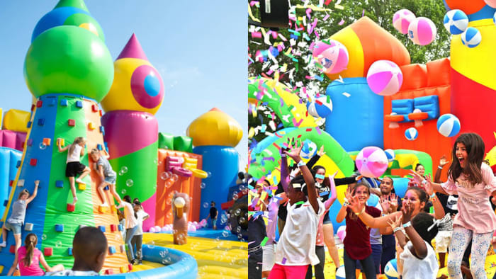 Sessions last three hours per ticket and include a dedicated time slot and unlimited access to all the inflatables.