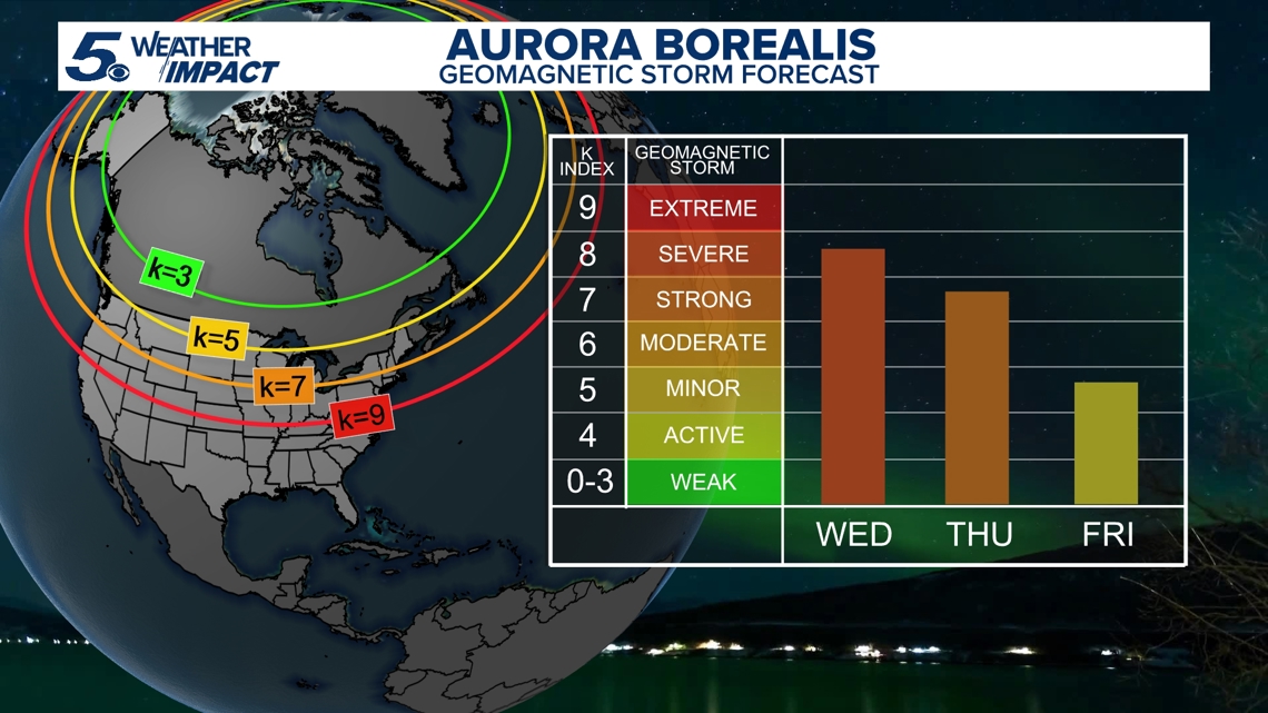 Yes, the aurora could still be visible other nights this week due to continuing chances for geomagnetic storms that create them. But the likelihood weakens the closer we get to the weekend.
